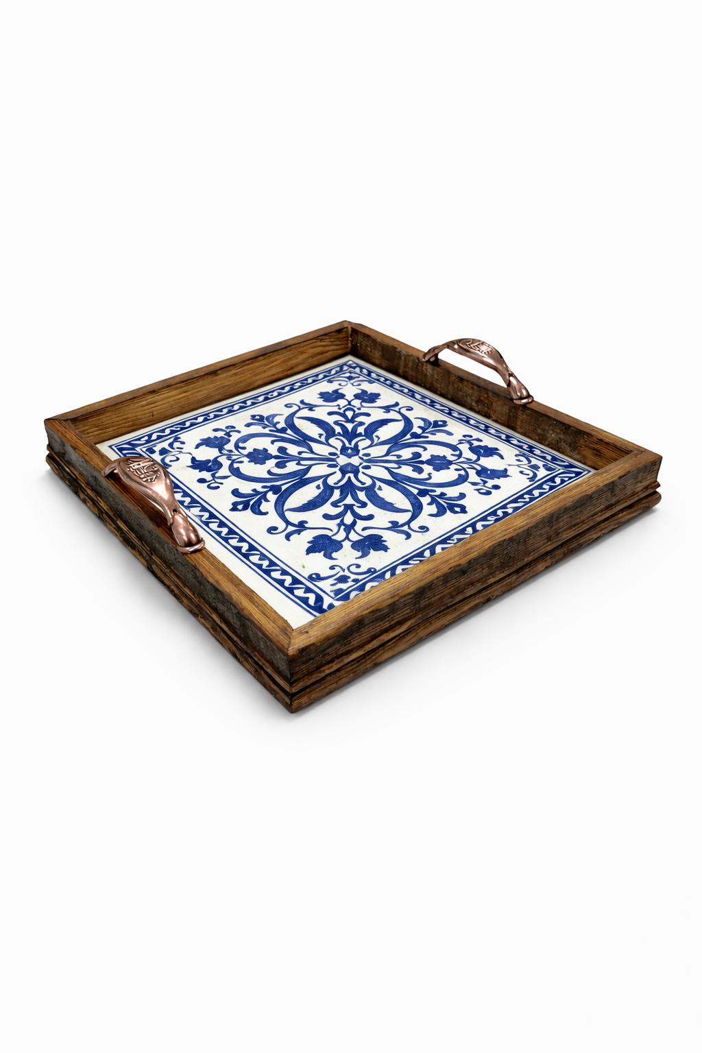 20X20 Cm. Çini Karo Uyumlu Ahşap Sunum Tepsi