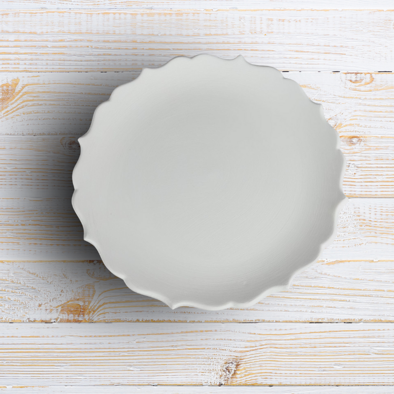 Yaklaşık 25 cm dış çap sahip, düz zeminli çini bisküvi tabak modelimiz; çini sanatına yeni başlayanlar için ideal bir çalışma yüzeyi sunar. Çukur olmayan formu sayesinde boyama ve desenleme işlemleri daha kolay uygulanabilir.