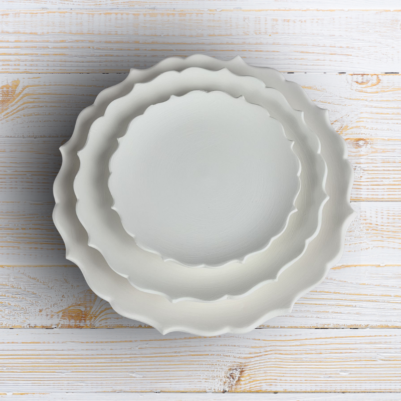 Yaklaşık 40 cm dış çap sahip, düz zeminli çini bisküvi tabak modelimiz; çini sanatına yeni başlayanlar için ideal bir çalışma yüzeyi sunar. Çukur olmayan formu sayesinde boyama ve desenleme işlemleri daha kolay uygulanabilir.